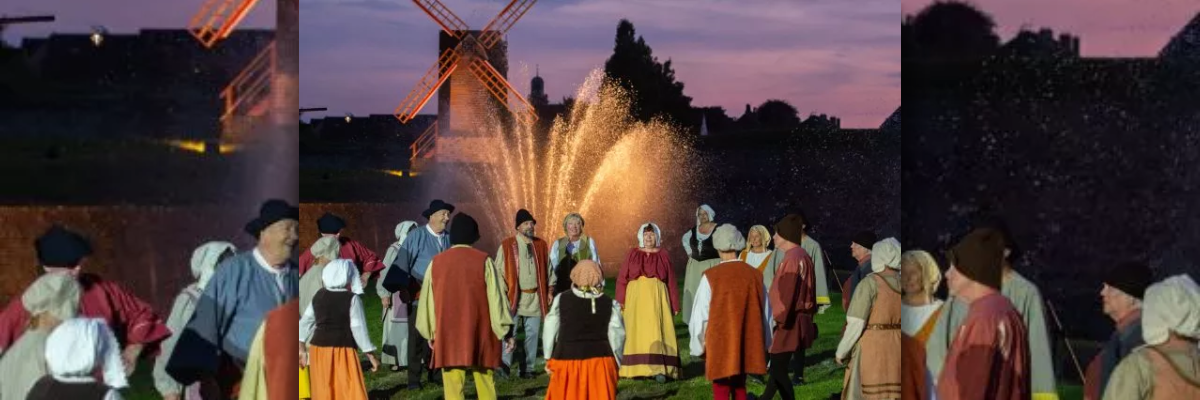 Pour le Nouveau Son et Lumière, les Troubadours de Gravelingues quittent leur Mer du Nord qu’ils ont tant chantée depuis plusieurs années, pour se tourner vers leur Terre, leur Flandre qui va vous enchanter ! Pour vous guider dans leur long périple, les Troubadours vous conseillent de suivre la famille Dumoulin, Meunier de Gravelines…
